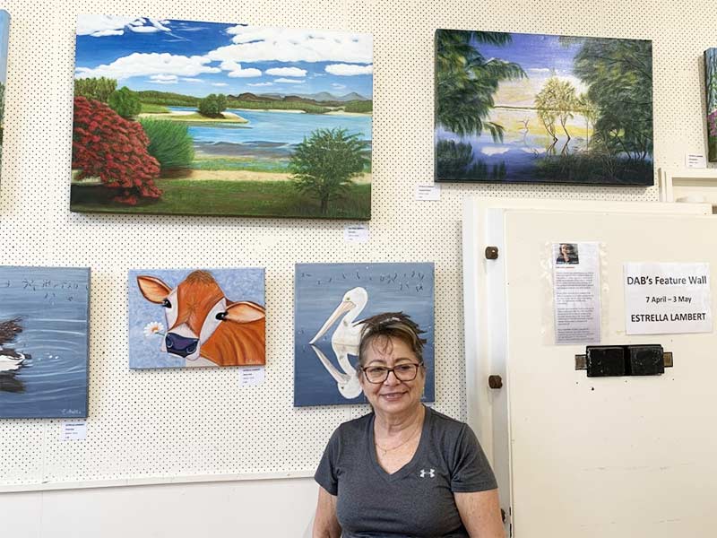 The Feature Wall is used in between DAB’s official exhibitions and provides an opportunity for an individual or a group of DAB artists to show and inform visitors to the gallery about their artwork. DAB artists can apply for the Feature Wall at any time during the year or for the following year.